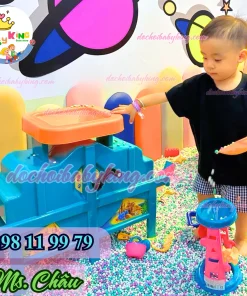 Trang bị các cối xôy hồ cỡ lớn được làm từ nhựa ABS chắc chắn, độ bền cao. Khi bé chơi không bị xê dịch, khu hồ hạt thêm sinh động hơn. Thu hút bé chơi lâu hơn.