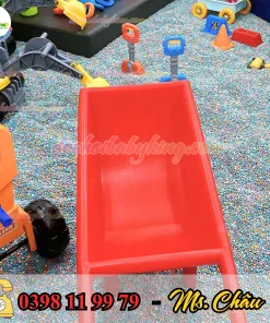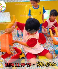 Bé xúc hạt đổ và đổ vào xe ben hoặc xe rùa mini để vận chuyển. Giúp tăng tính tương tác, trải nghiêm thú vị. Xúc đổ hạt sứ vận chuyển giúp bé vận động nhiều hơn.