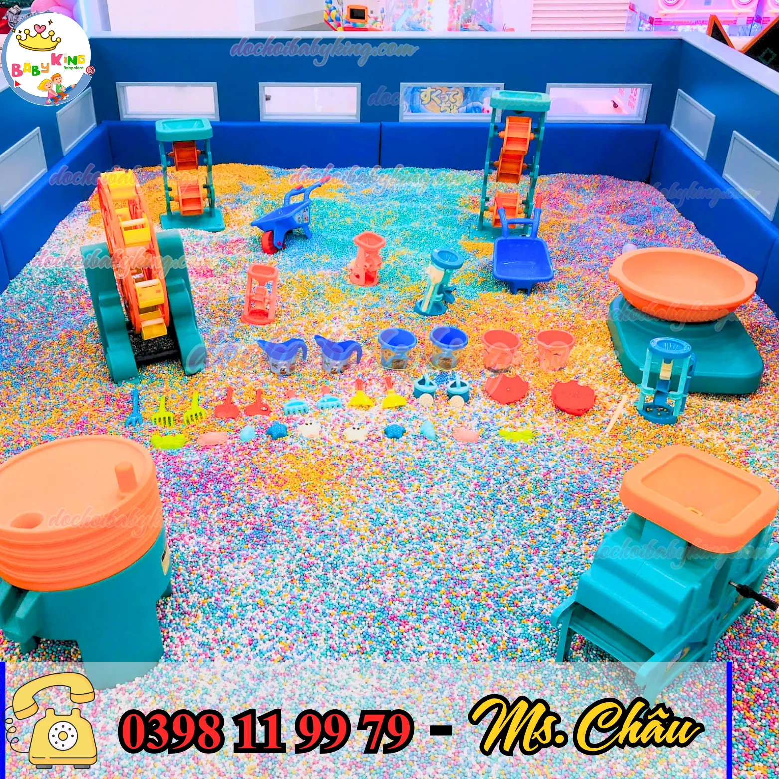 Khu hồ xúc hạt phổ biến dễ thu hút bé tham gia, thiết kế sinh động, đồ chơi hồ hạt đa dạng giữ chân khách quay lại. Chi phí đầu tư tối ưu hiệu quả cao.