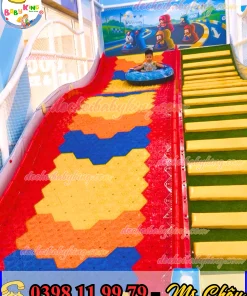 Máng trươt cầu vồng kết hợp nhà banh: tăng độ trượt xuống hồ banh, tăng sự dẫn vui nhộn.